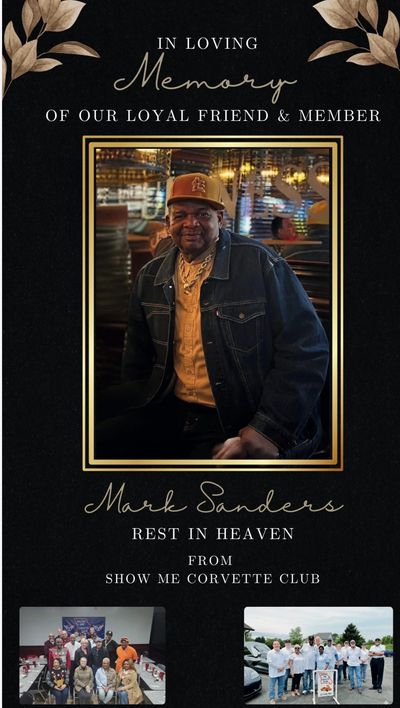 Show Me Corvette Club is sadden to announce the passing of Mark Sanders a beloved supporter of of the club. Jerome "Bucky" Givens president of Show Me Corvette Club is asking all available members to come out to support the family in difficult time.